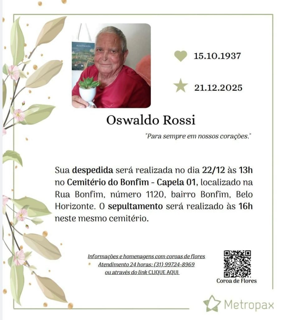 Morreu, na madrugada desse domingo (21), Oswaldo Rossi, aos 88 anos, em Belo Horizonte. Entre 1960 e 1963, o atleta mineiro atuou como atacante do Cruzeiro e conquistou duas vezes o Campeonato Mineiro.