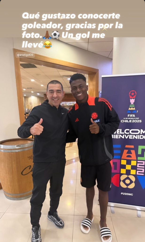 Contratado para reforçar o Cruzeiro em 2026, o jovem atacante Néiser Villareal se emocionou, nessa terça-feira (30), ao tirar foto com o compatriota Victor Aristizábal. Ídolo e campeão da Tríplice Coroa, em 2003, sob o comando de Vanderlei Luxemburgo, o colombiano visitou a concentração da seleção, no Chile, em meio à disputa da Copa do Mundo Sub-20.