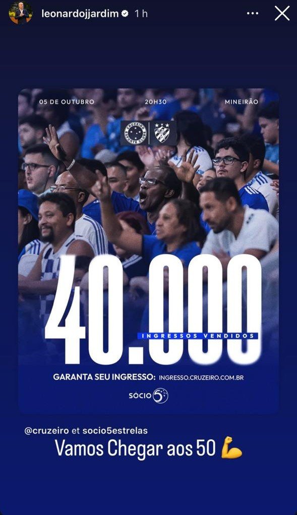 Nas redes sociais, o técnico do Cruzeiro convocou os torcedores para comparecerem no Gigante da Pampulha para o duelo fundamental na luta do time celeste na parte de cima da tabela do Brasileiro.