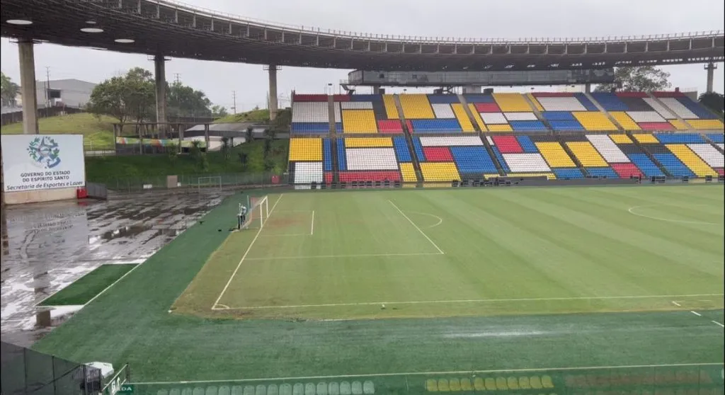 Enviados especiais ao Espírito Santo – Às vésperas do duelo entre Cruzeiro e Defensa y Justicia, pela Vitória CUP, chove desde o início da madrugada em Cariacica, na Região Metropolitana de Vitória. Apesar das chuvas, o gramado apresenta boas condições horas antes de a bola rolar. Brasileiros e argentinos vão se enfrentar na noite desta quinta-feira (3), às 20h (de Brasília), no Kléber Andrade.